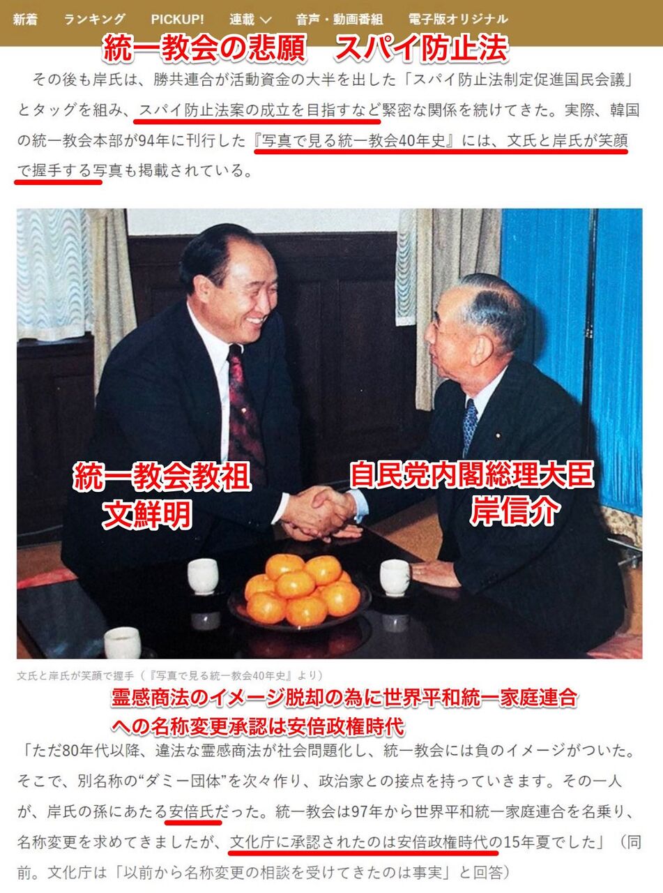 A級戦犯岸信介(自民党)の時代から日本国民は改憲・軍拡の霊感洗脳を受けて来た。